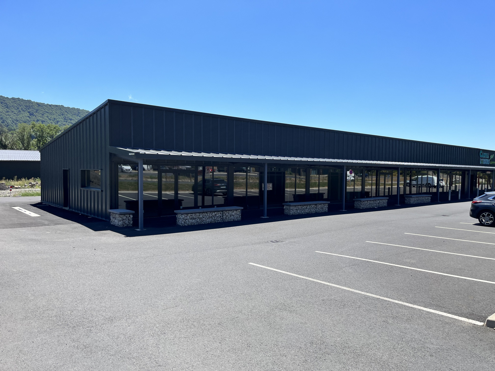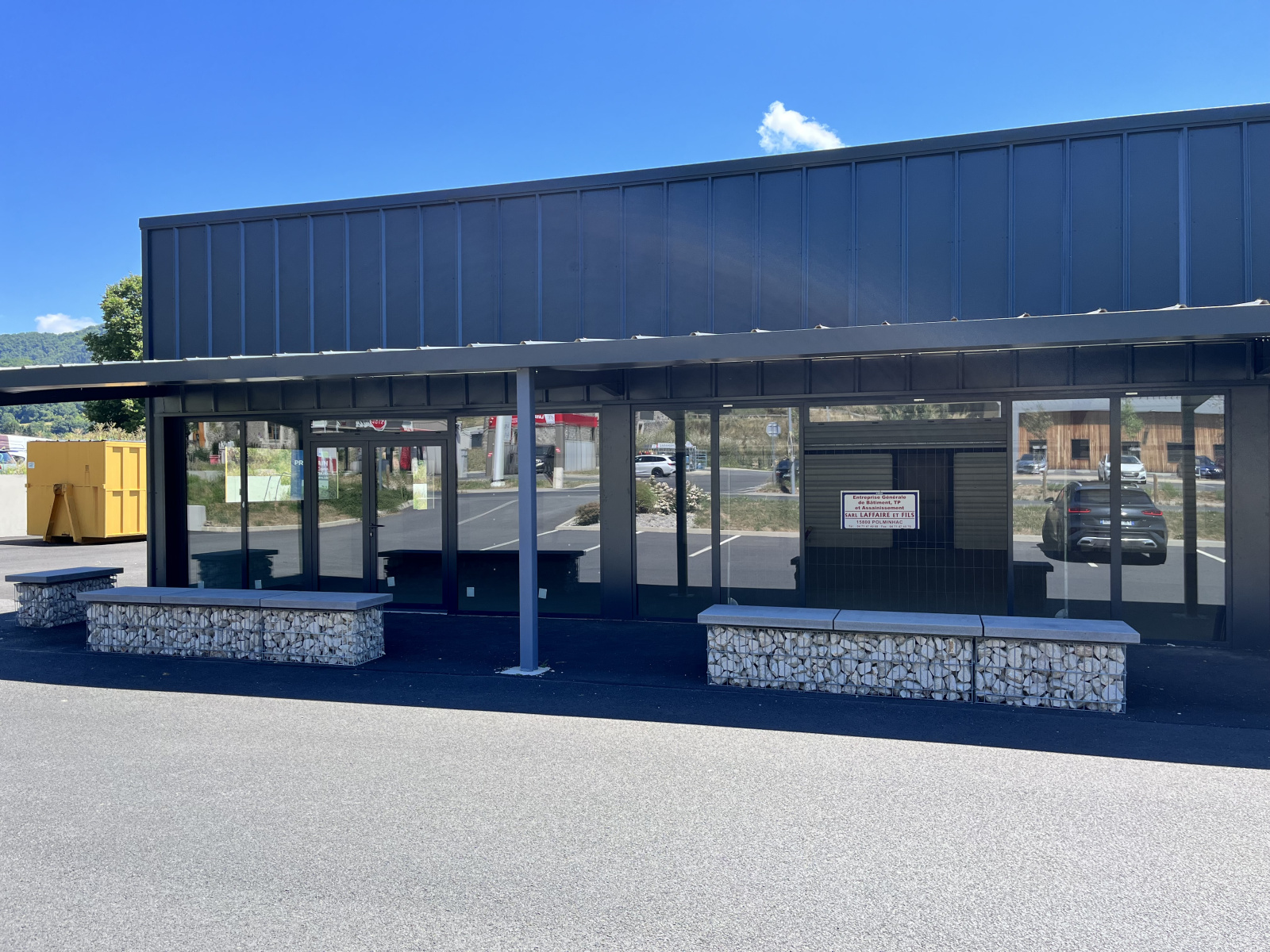 A louer dans centre commercial Vic sur cère, cellule clos couvert, fluides en attente, finition brut, dalle béton finition lisse, façade vitrée, superficie de 74.48m2 (Possibilité 150 m2) – 10€ HT/m2 – libre.