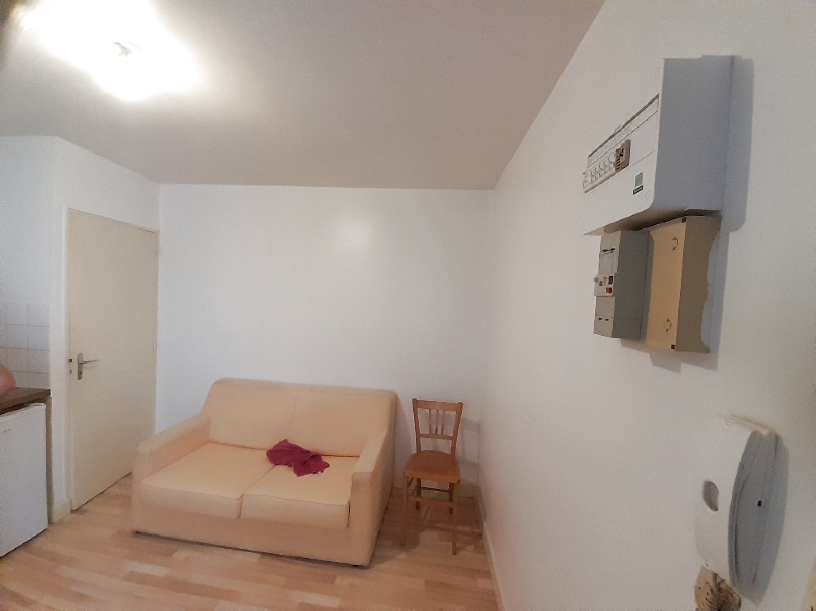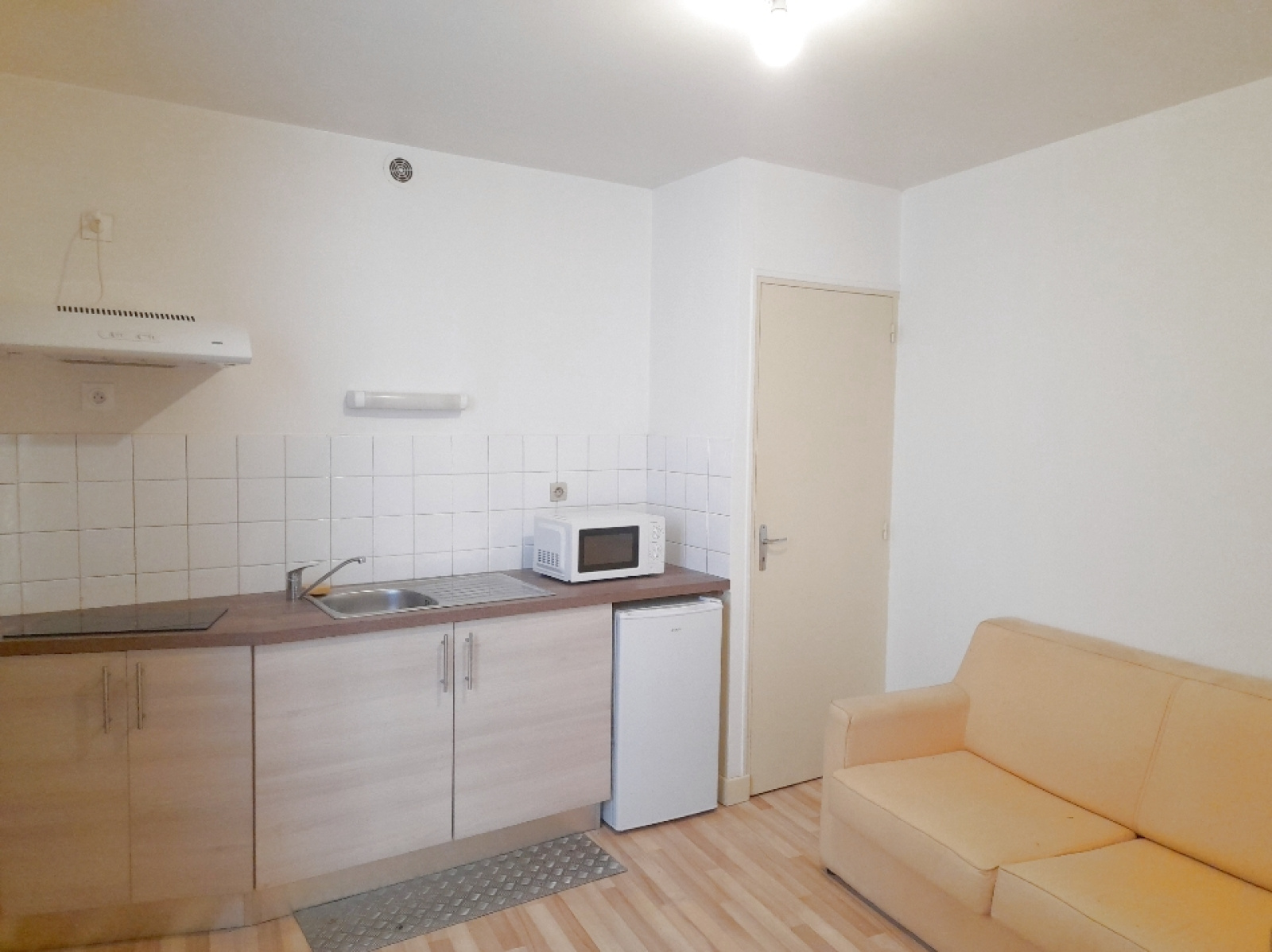 Pièce de vie avec coin cuisine équipée et coin couchage