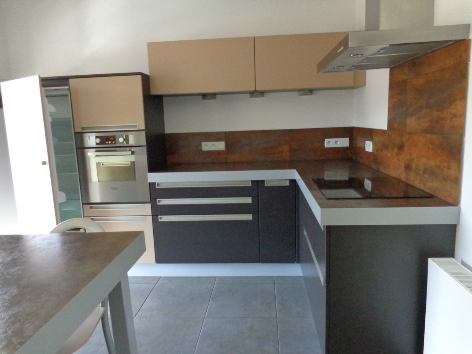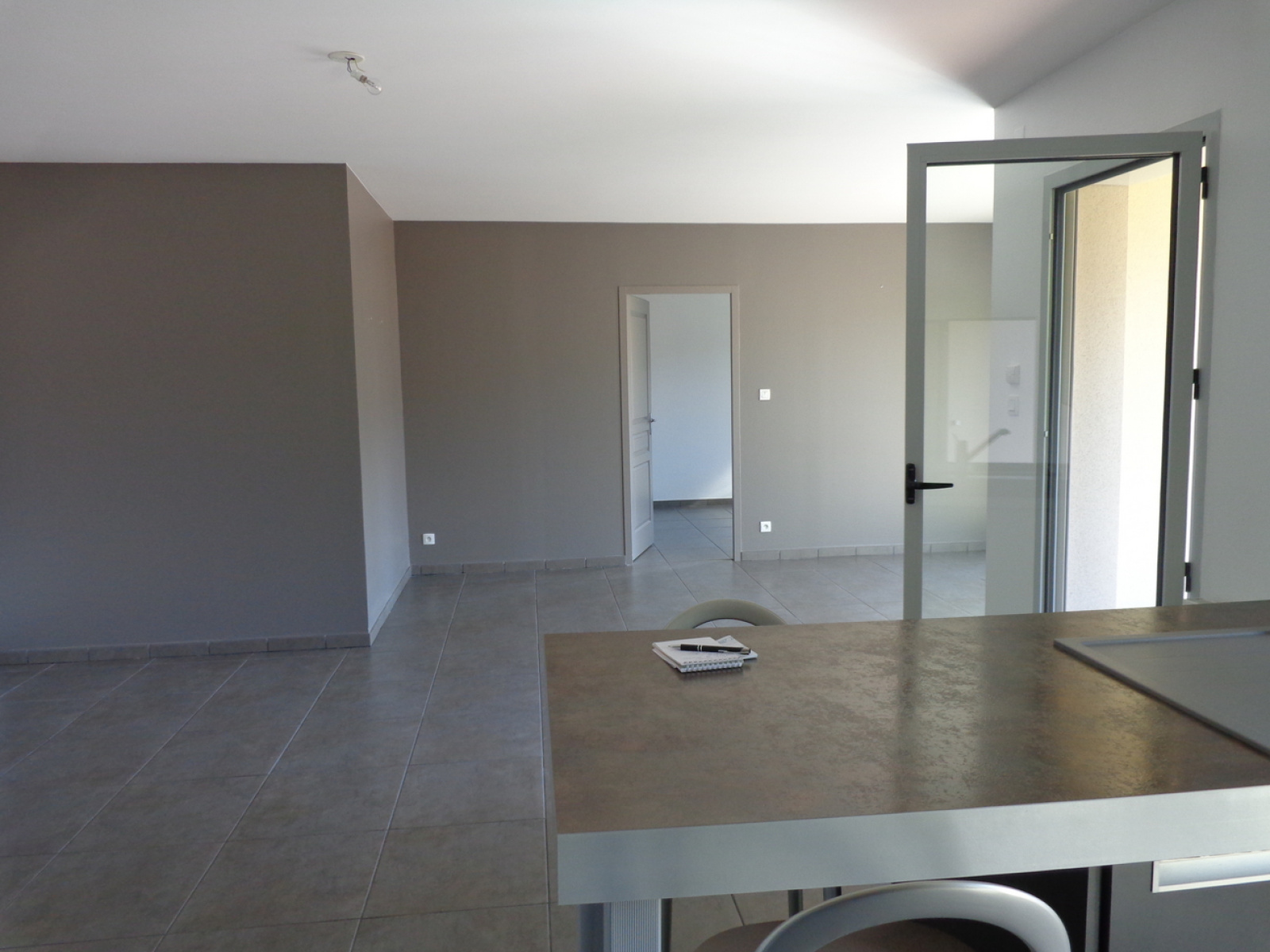 Grande salle à manger ouverte sur cuisine équipée (tout électroménager + mobilier) et sur terrasse privative de 15 m²