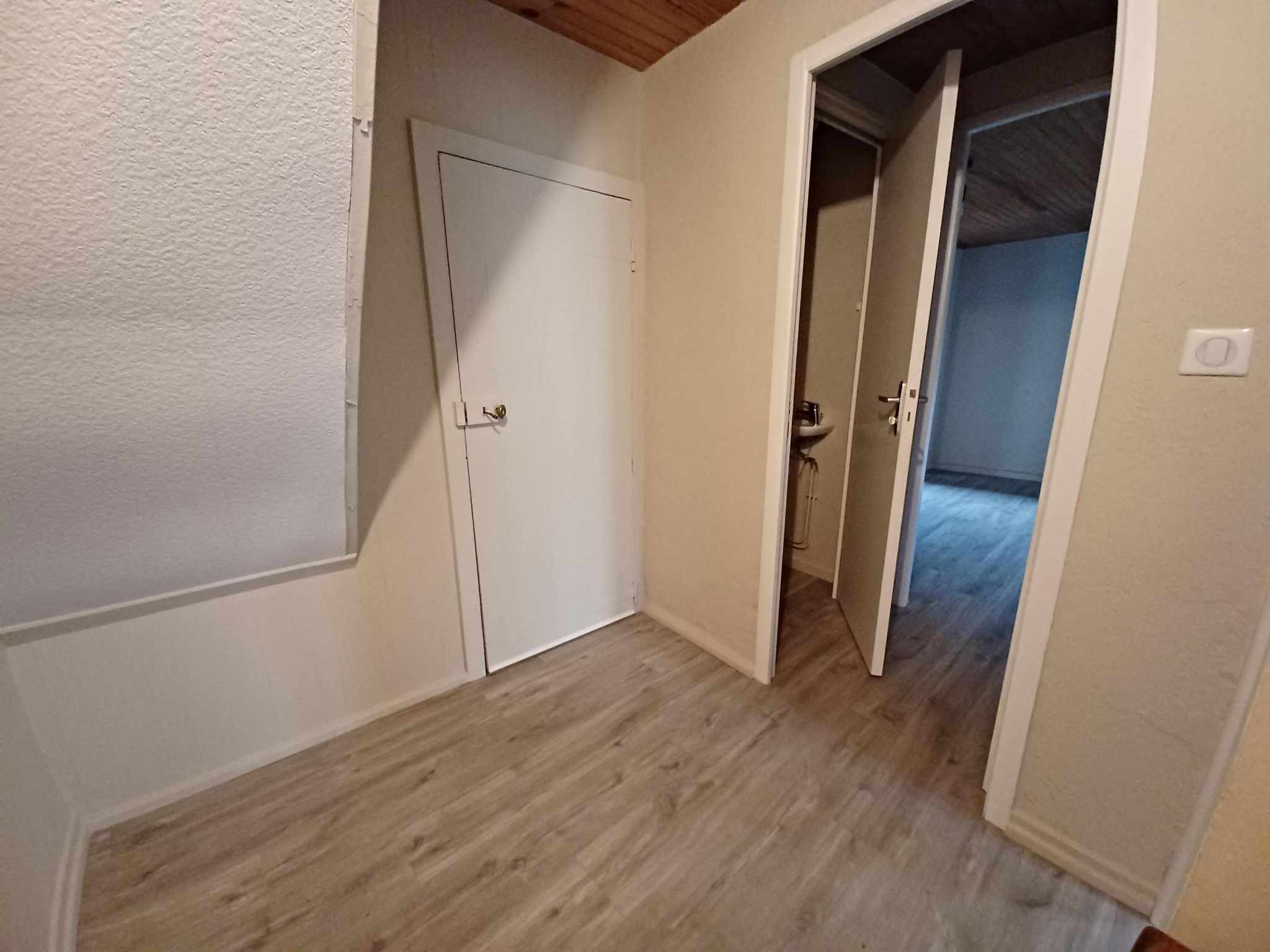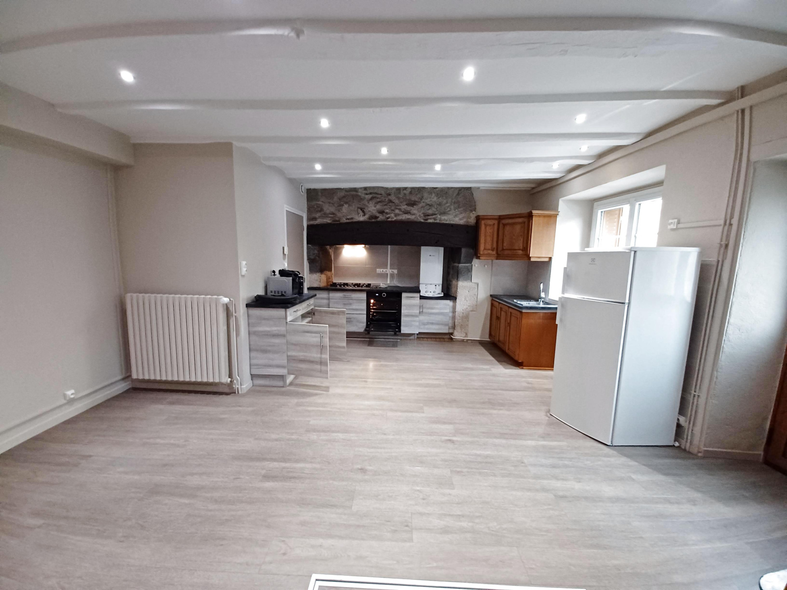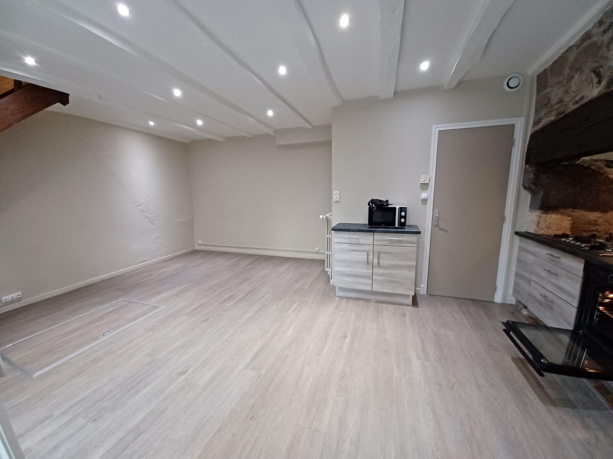 RDC : cuisine ouverte (meubles haut et bas) sur pièce de pièce, salle d’eau, WC et accès cave sous maison