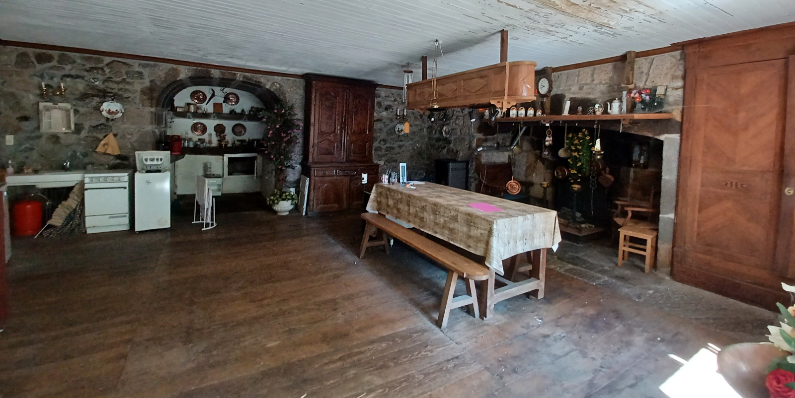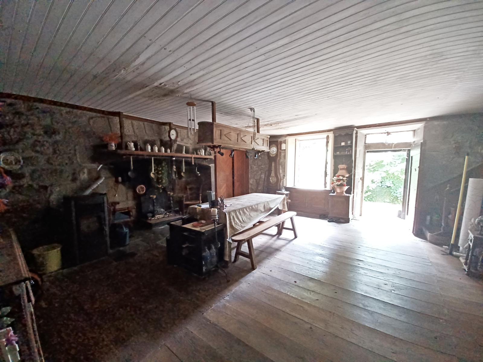 Cette maison couverte en lauzes et ardoises à gardée tout son caractère de l'époque une belle pièce à vivre de 45 m2 avec son cantou et sa souillarde, de belles boiseries, une salle à manger de 40 m2 avec une cheminée, à l'étage une chambre de 17 m2, un bureau de 15 m2, une salle de bains/wc, un espace grenier aménageable de 40 m2. Cave, garage non attenant juste derrière la maison, jardin de 300 m2 environ. Chauffage fuel et poêle à granulés. Assainissement individuel à refaire. Sans vis à vis. A rénover. Taxe foncière 310e. Maison vendue meublée