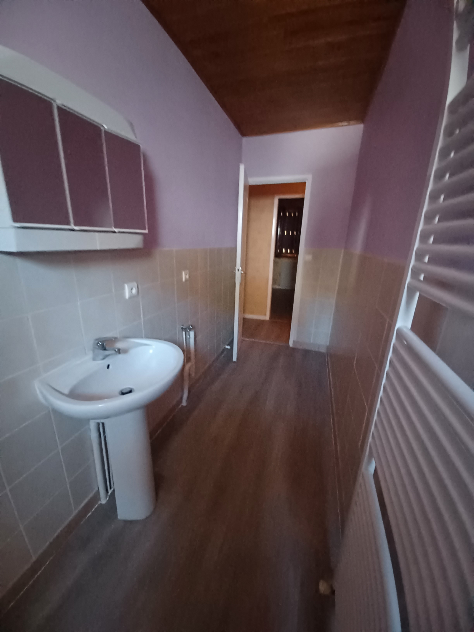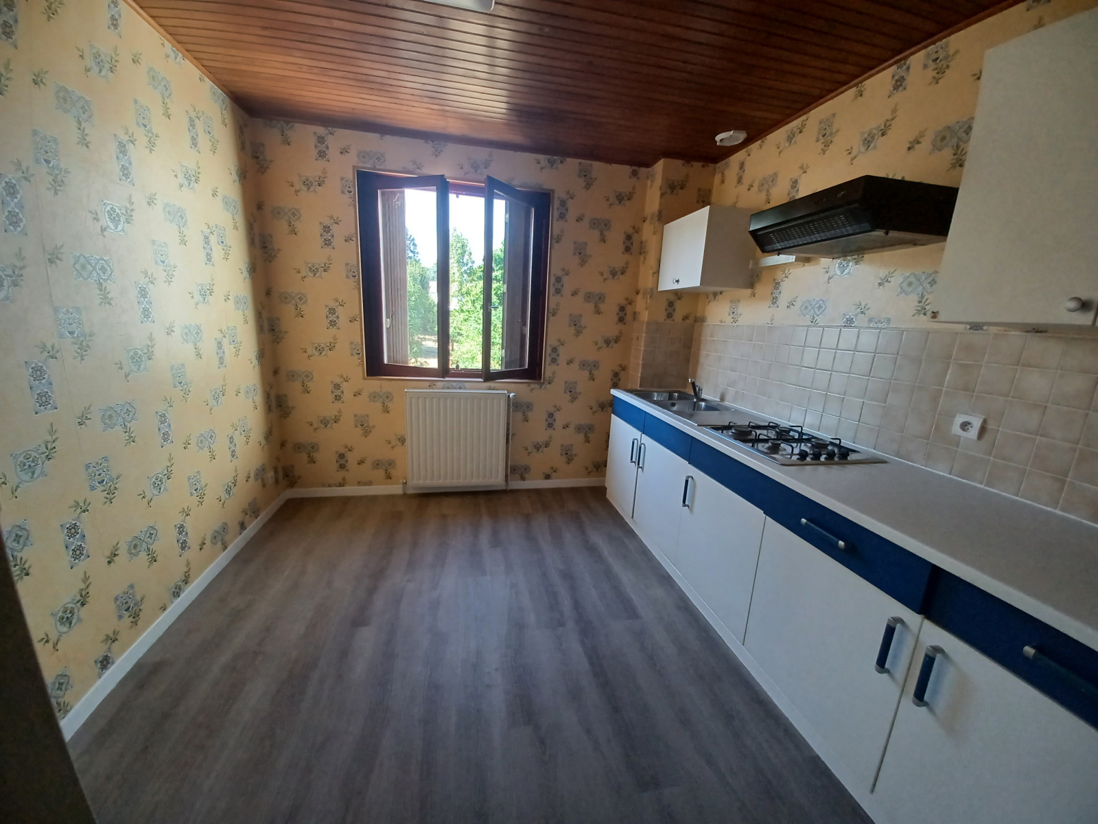 Maison de 115 m2 sur un terrain de 1000 m2 actuellement divisé en 2 appartements mais qui communiquent pour faire une maison, au RDC, une cuisine de 9.5 m2, un salon de 15 m2 et une chambre de 13m2 pouvant etre réunis pour faire une belle pièce à vivre, salle d'eau wc, à l'étage, une cuisine de 11 m2, un salon de 20 m2 et une chambre de 13 m2, salle d'eau, wc. Chauffage central fuel ( 2 chaudières). Grenier total. Cave totale. Tout à l'égout. Taxe foncière 1116e