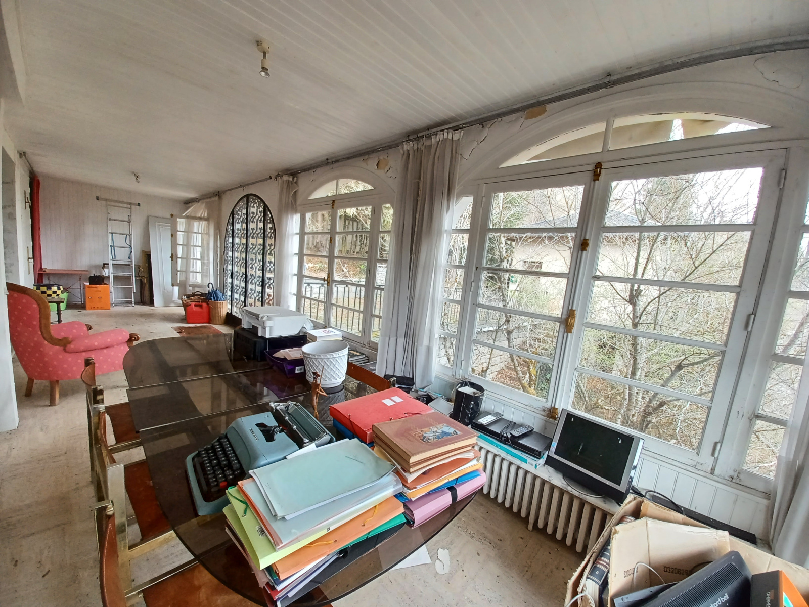 Cet ancien hôtel particulier du milieu des années 50 sur les hauteurs de St Martin Valmeroux a gardé tout son charme avec ses moulures, cheminées en marbre et ferronnerie d'époque, il se compose au RDC de plain pied d'une véranda à l'est, une salle à manger, une cuisine, un salon avec cheminée, une salle de bains, un dressing et 2 chambres dont une donnant sur une véranda à l'ouest, à l'étage 3 chambres et une salle de bains/wc, au RDJ 2 appartements T2 et T3 de 45 et 57m2. Un pavillon de chasse de l'autre côté de la piscine propose une cuisine, un salon, une chambre et salle d'eau en RDC, à l'étage, un bureau et 2 chambres pour un total de 70m2. Un grand garage de 35 m2 sur 2 niveaux. Terrain de 5900 m2. L'ensemble est à rénover