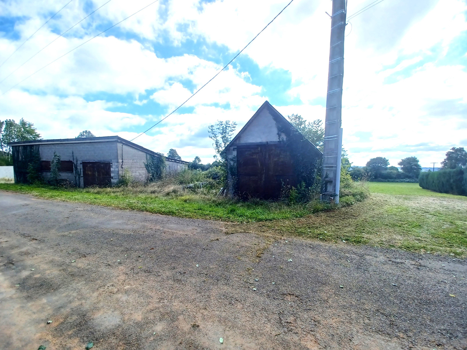 A 3mn du centre ville lieu dit Champs froids, terrain de 1033 m2 avec hangar en parpaing de 100m2 au sol raccordé à l'électricité et raccordable à l'eau sur le terrain, un second hangar en parpaing et bois plus petit. taxe foncière 230e